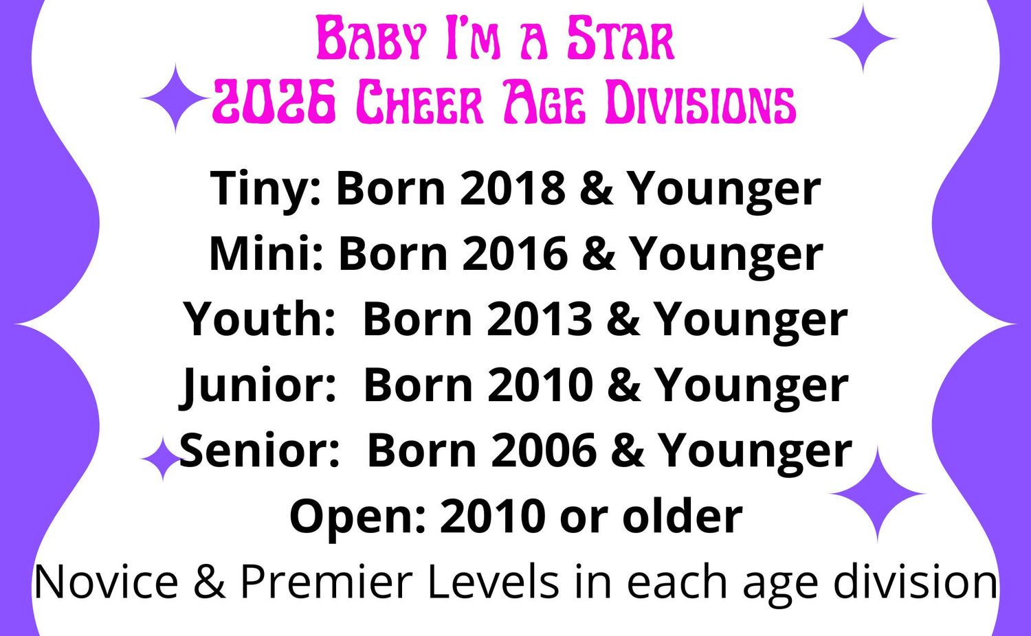 Baby I'm a Star is NOT affiliated with USASF or Varsity or Open