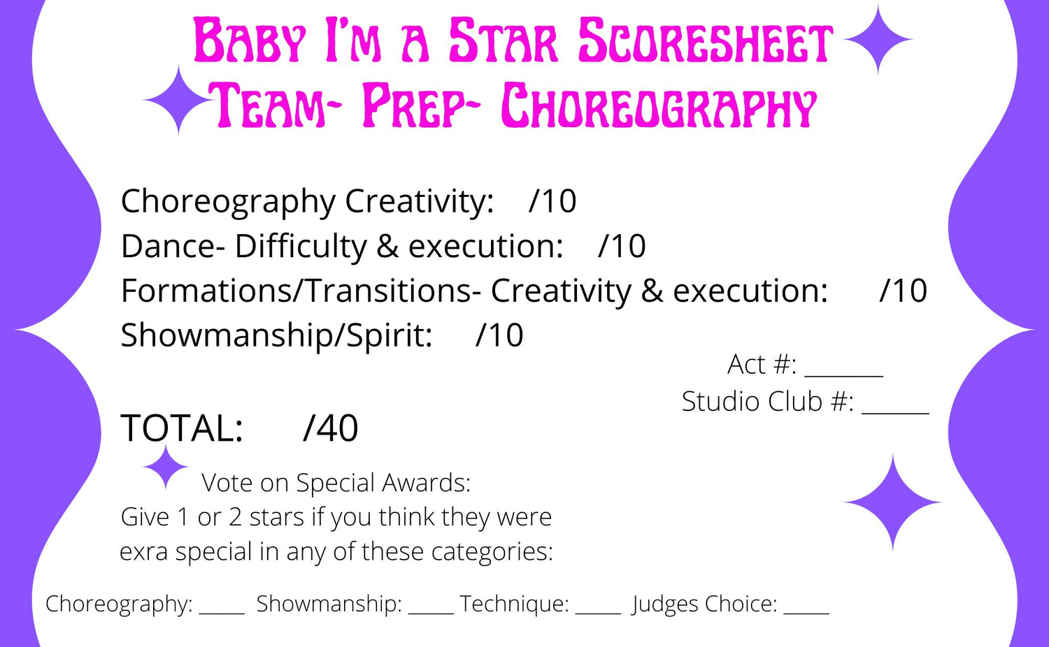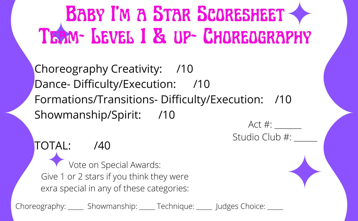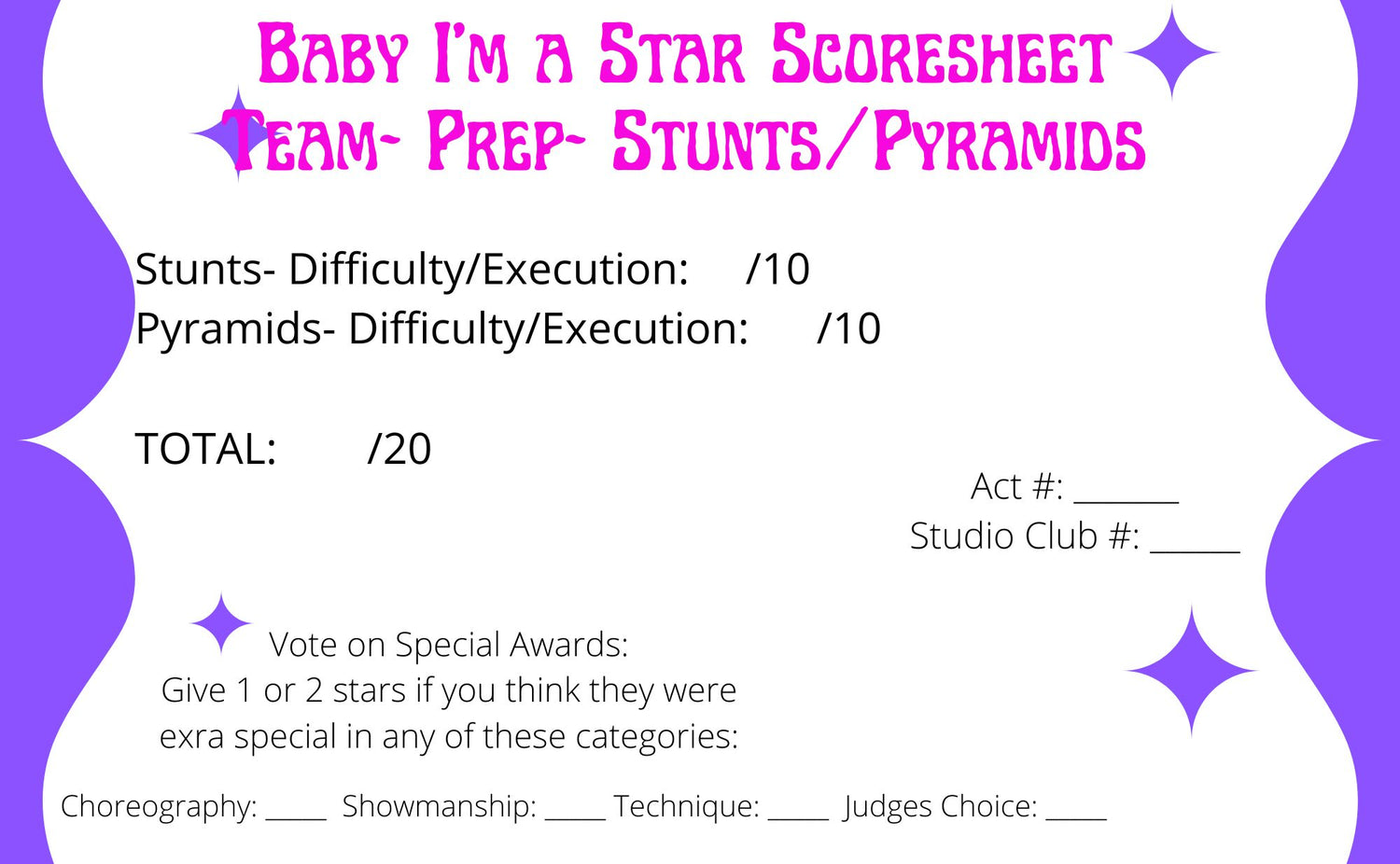 So whether your a "Varsity" focused gym, or more focused around "The Open" you can have a VERY successful time at Baby I'm a Star!